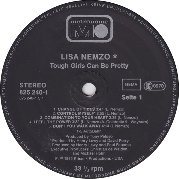 Lisa Nemzo – Tough Girls Can Be PrettyLiko 1 €14,00Liko 1 produkto kiekis: Lisa Nemzo – Tough Girls Can Be Pretty Į krepšelį Add to wishlist Kategorijos: Classic Rock, Hardrock, Rock Žymos: Lisa Nemzo, vinilai, vinilas, vinilinės plokštelės, vinyl record Share this product Aprašymas Papildoma informacija Aprašymas Su orig. vidiniu voku Change Of Tides 3:47 Control Myself 2:55 Combination To Your Heart 3:35 I Feel The Power 3:32 Don’t You Walk Away 4:14 Hard For A Girl Like Me 4:31 Reckless Love 2:55 Games 3:32 Let’s Get Started 4:01 I Can’t Stop 3:20 Papildoma informacija Formatas LP Būklė Naudotos Leidimo metai 1985 Leidimo šalis Germany Plokštelės būklė/ Voko būklė EX/VG+