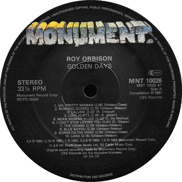 Roy Orbison – Golden Days (The Collection Of 20 All-Time Greats)
